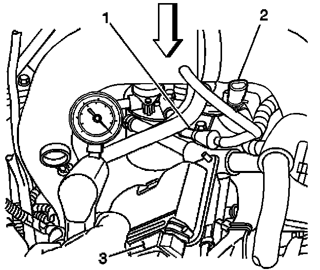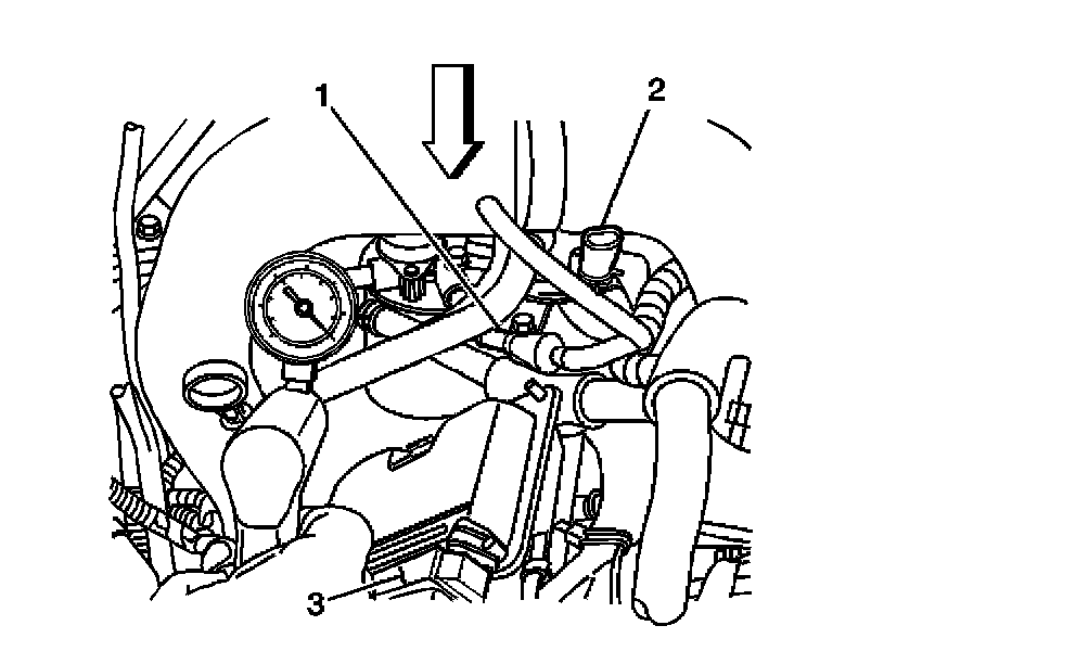 1. Install the J 44638 Vacuum Gage to the fuel system service port on the right front side of the engine.