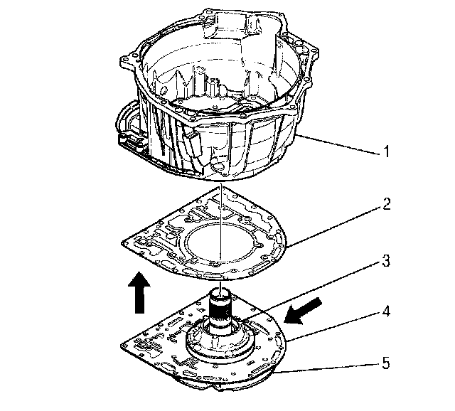 Torque Converter Housing from Front Support Disassemble1. Position the converter housing/front support module (2) on the work table so that the torque converter housing is facing up.