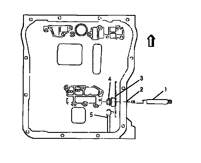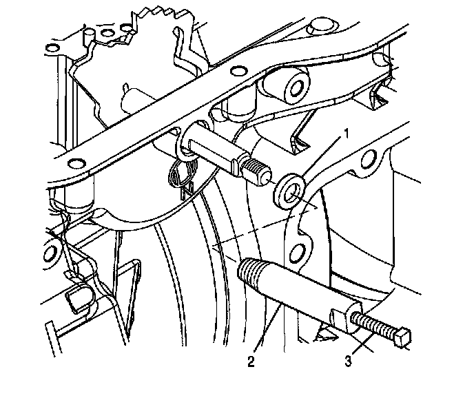 15. Remove the nib of park pawl apply assembly through the keyhole in detent lever (2).