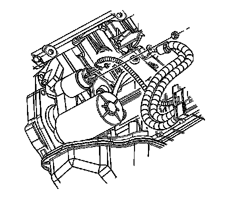 20. Remove the fuel line bracket nut from the converter housing stud.