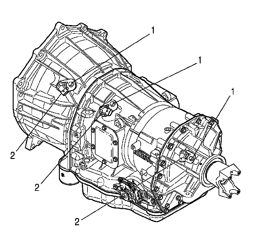 2. Install the new speed sensor (2) into the speed sensor bore. Align the hole in the retaining bracket with the bolt hole in the speed sensor boss.