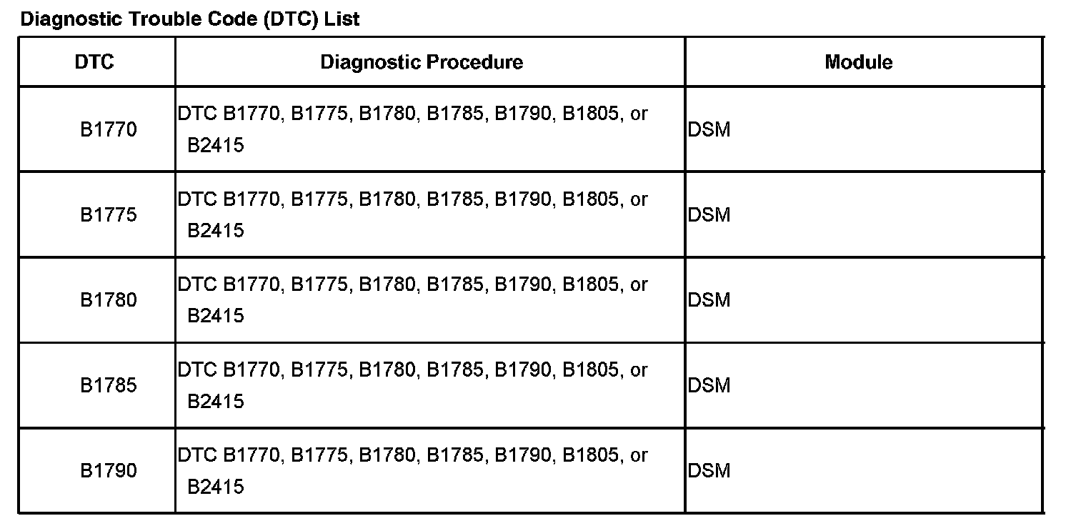 DTCs B1770 - B1790:
