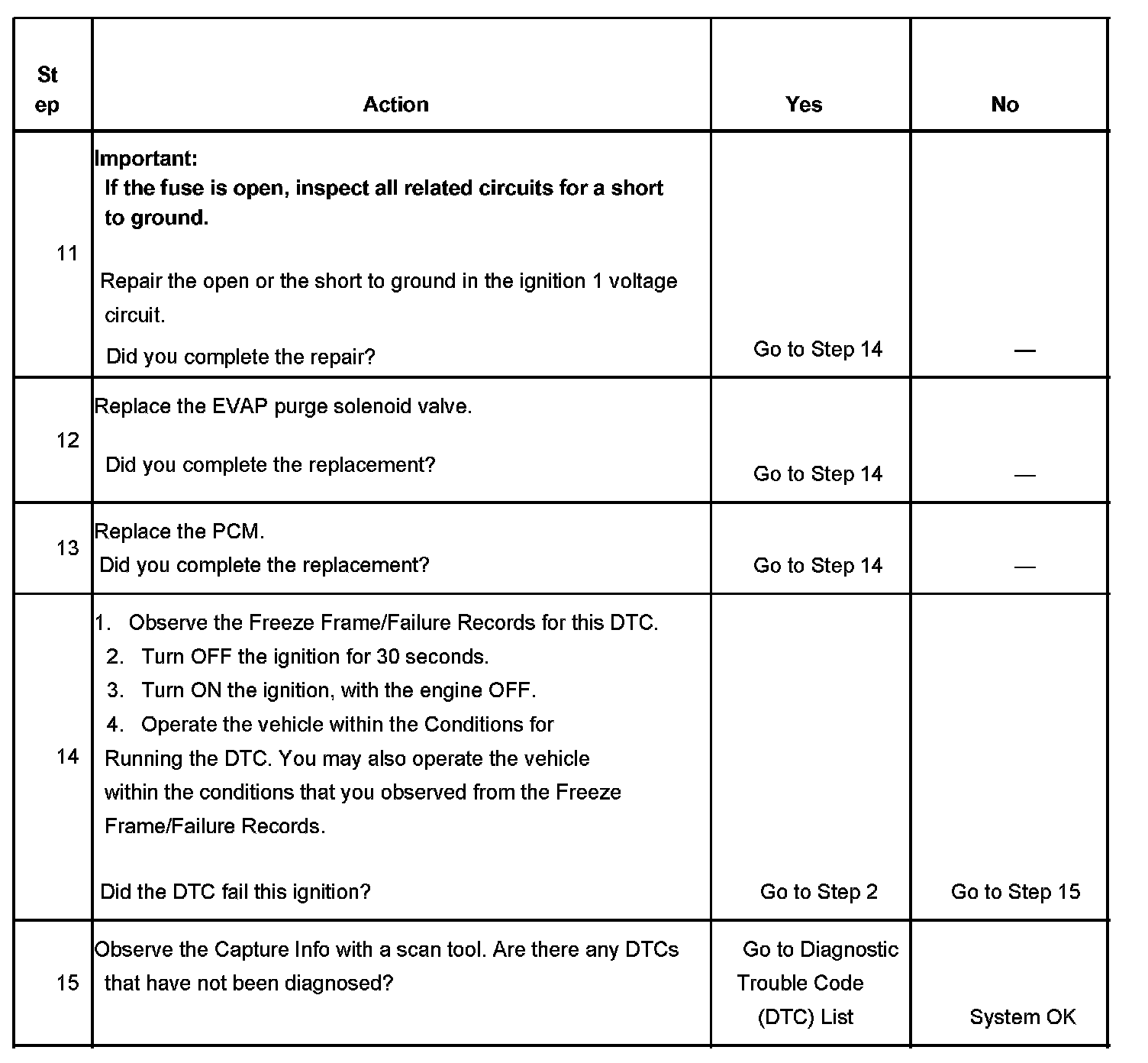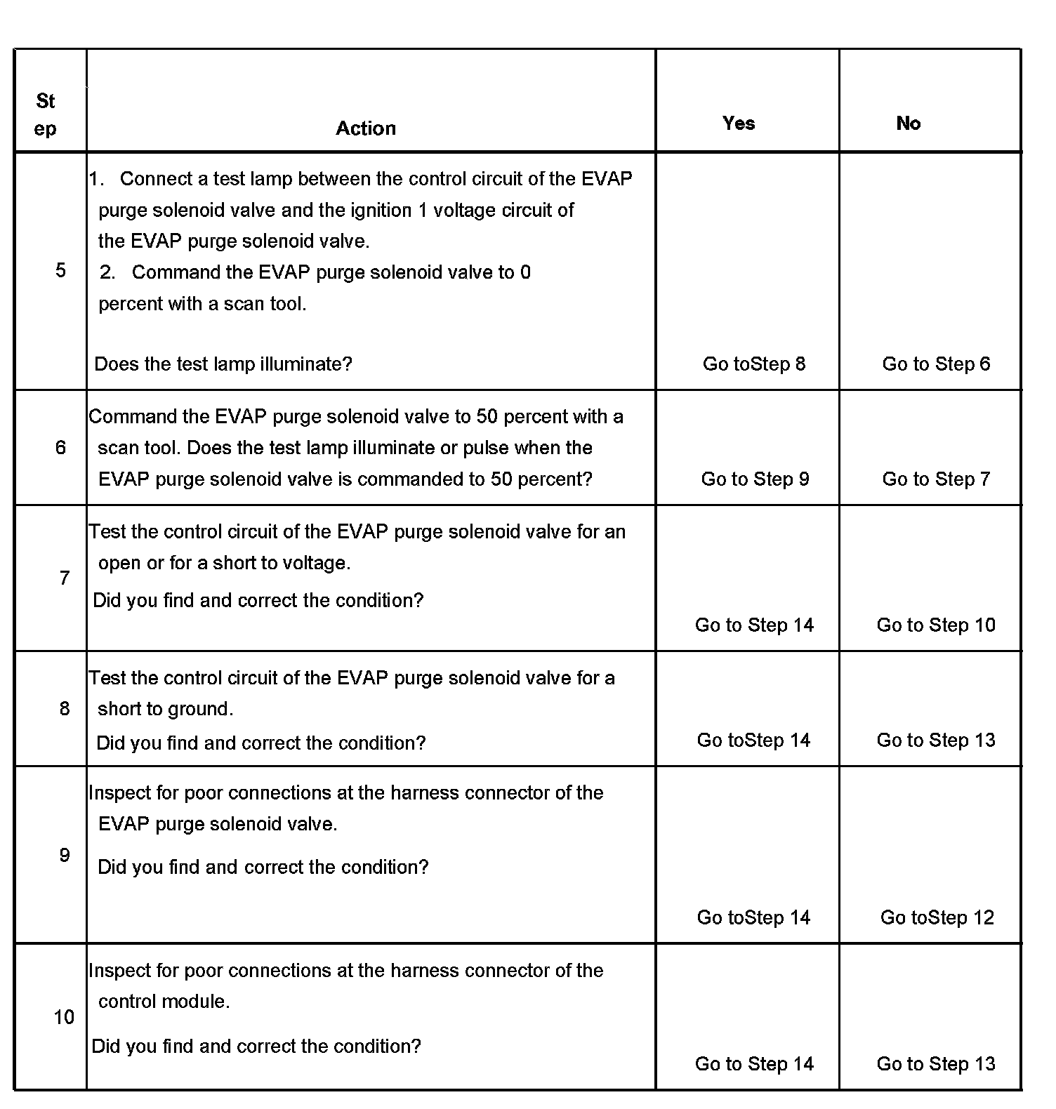 6. This step tests if a ground is constantly being applied to the EVAP purge solenoid valve.
