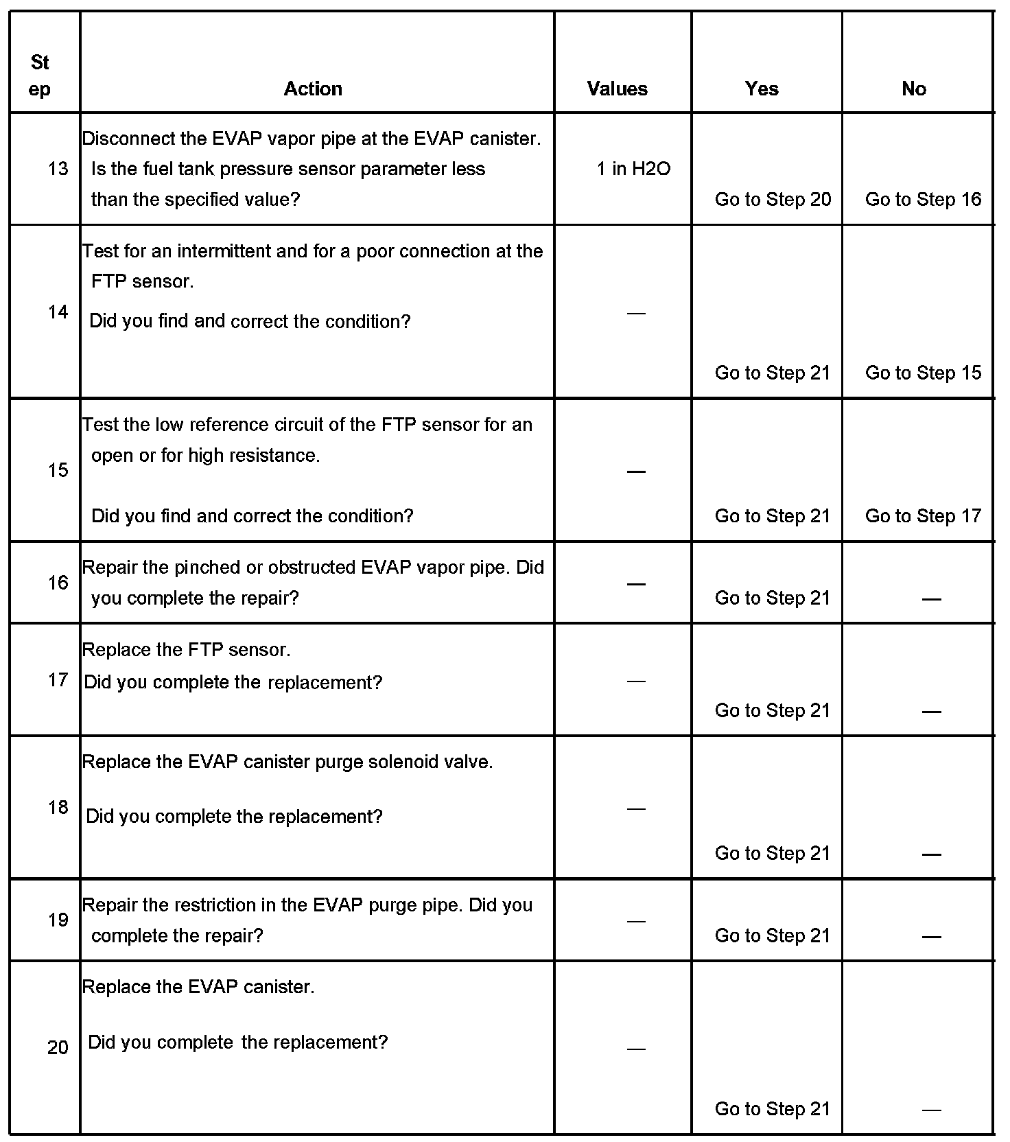 - DTC P0106, P0107, P0108, P0112, P0113, P0116, P0117, P0118, P0120, P0125, P0131, P0132, P0133, P0134, P0135, P0136, P0137, P0138, P0140, P0141, P0151, P0152, P0153, P0154, P0155, P0156, P0157, P0158, P0160, P0161, P0220, P0442, P0443, P0446, P0449, P0452, P0453, P0500, P1111, P1112, P1114, P1115 are not set.