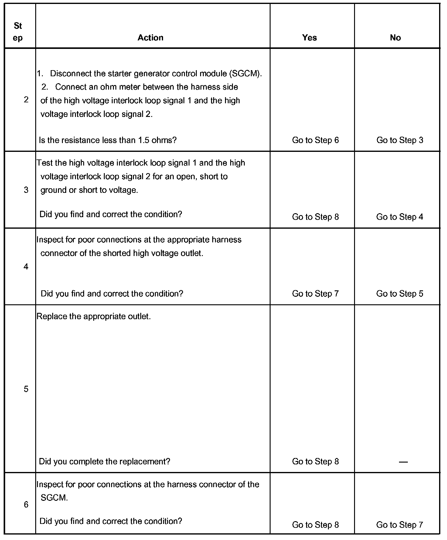 The starter generator control module (SGCM) uses the interlock circuit to monitor the plugs and connectors for hybrid system function. The interlock indicates the state of the connectors in the 110 voltage circuits. In the SGCM, the primary side of the transformer is connected to a low frequency oscillator circuit. When the loop is complete, the shorted secondary reduces the oscillator voltage, and a comparator senses this as a good and complete interlock loop. If the loop is open, the oscillator amplitude increases and the comparator senses this as a problem.