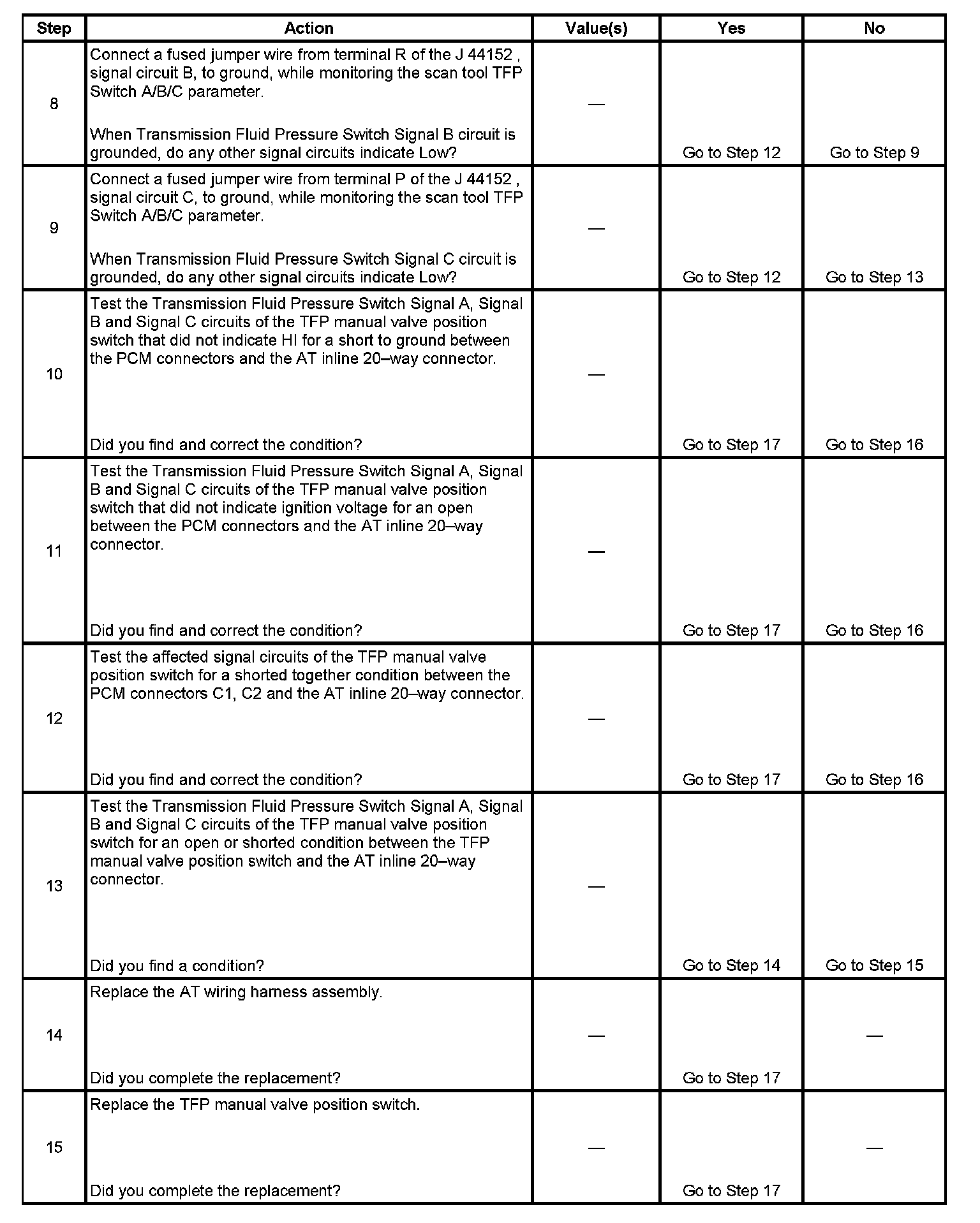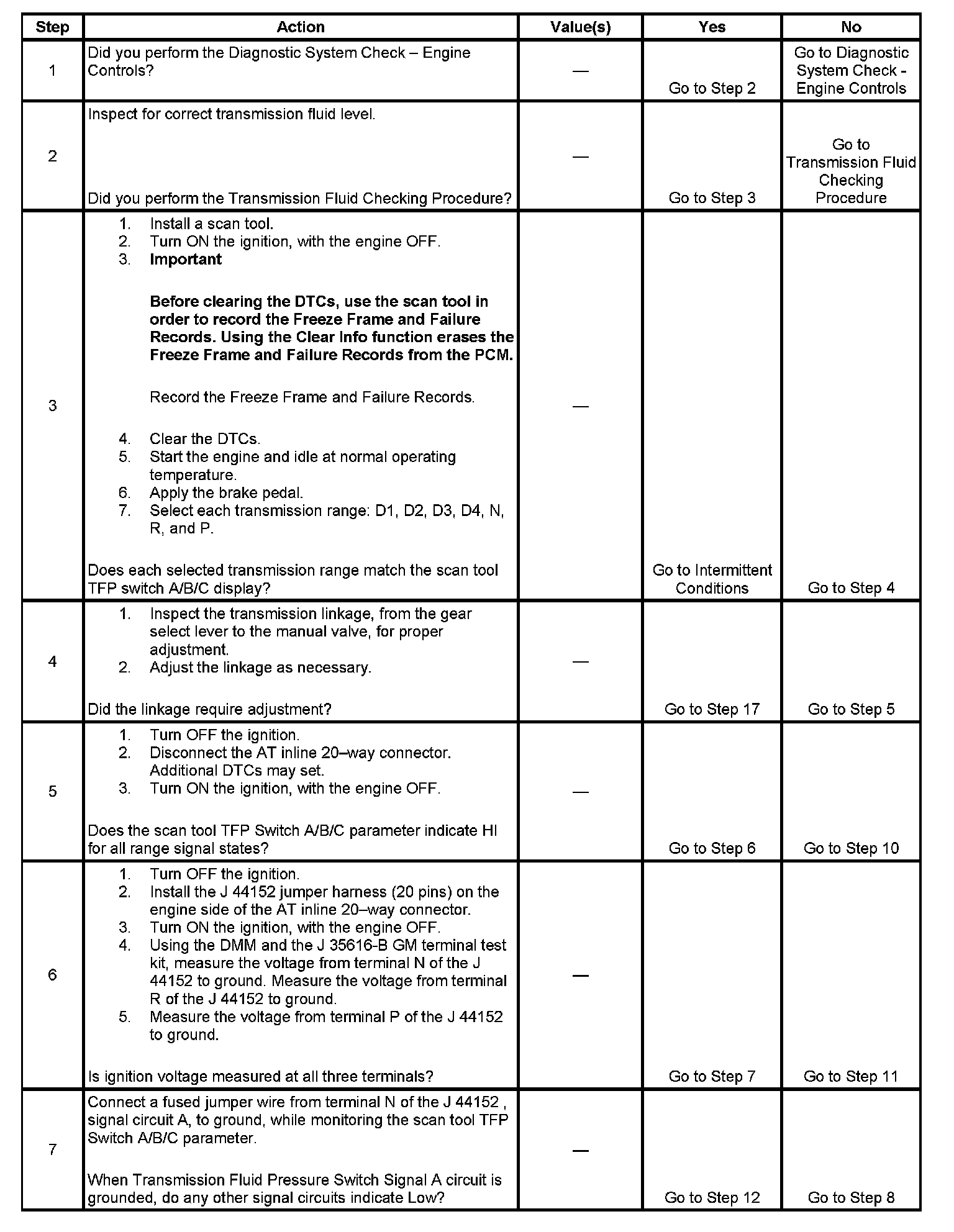 ^ Refer to Transmission Fluid Pressure (TFP) Manual Valve Position Switch Logic for the normal range signals and the illegal or invalid switch combinations.