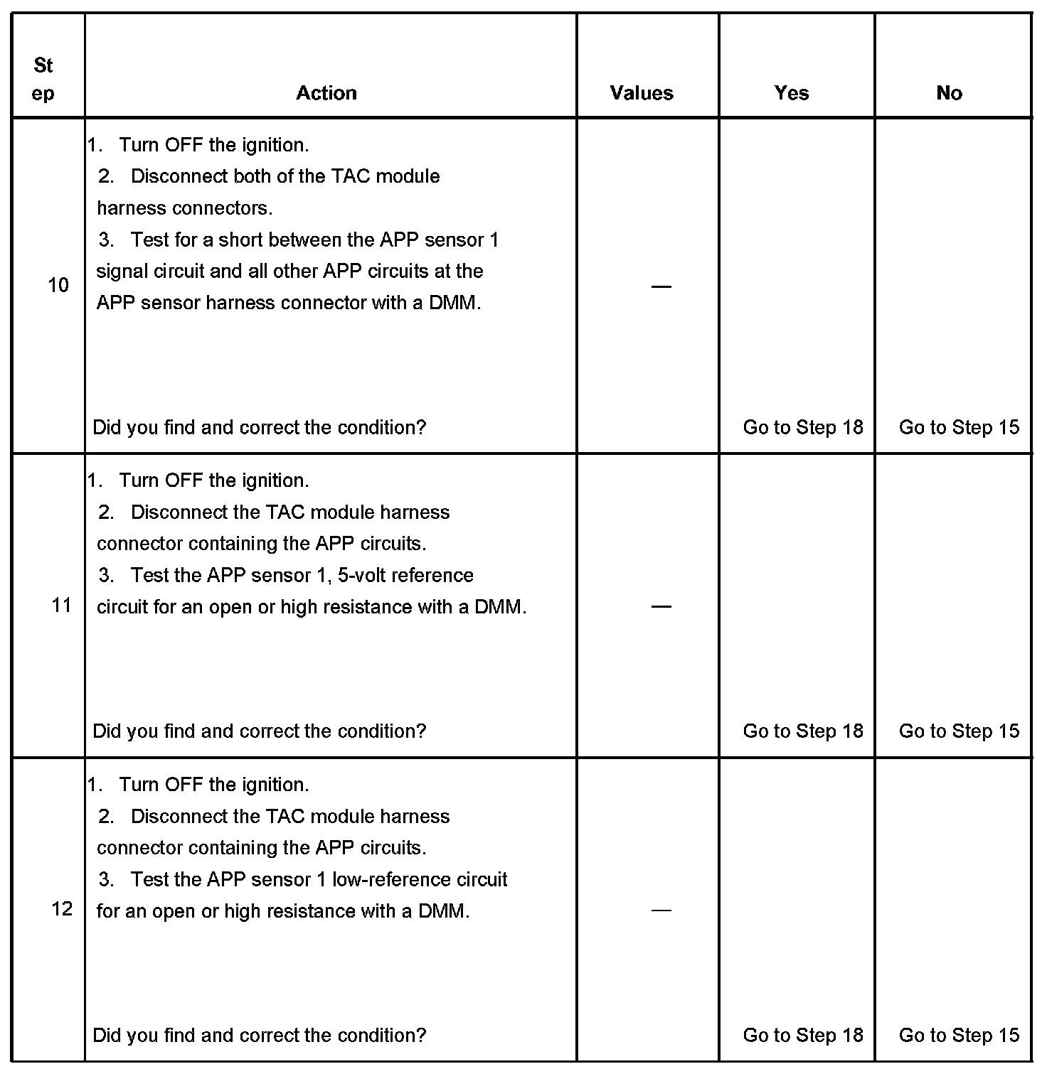 10. This step determines whether the TAC module or a shorted circuit is causing the condition.