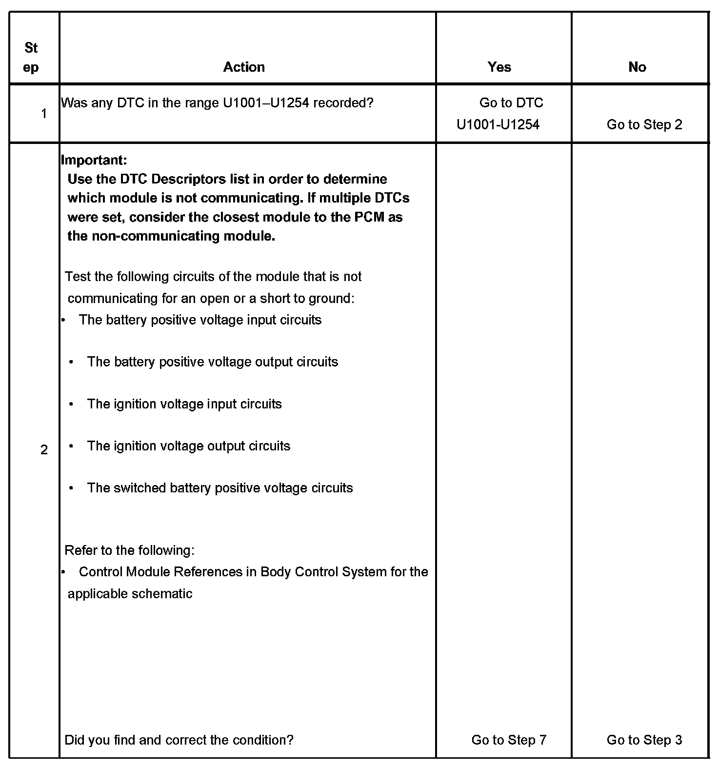 Modules connected to the class 2 and high speed GMLAN serial data circuits monitor for serial data communications during normal vehicle operation. Operating information and commands are exchanged among the modules. All DTCs in this range are reported on class 2 link to the scan tool by powertrain control module (PCM) even if they may be set by different modules.