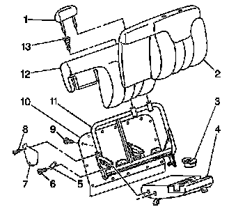 6. Release the hook, and the loop strips retaining the seat back cover (2) to the foam pad (12).