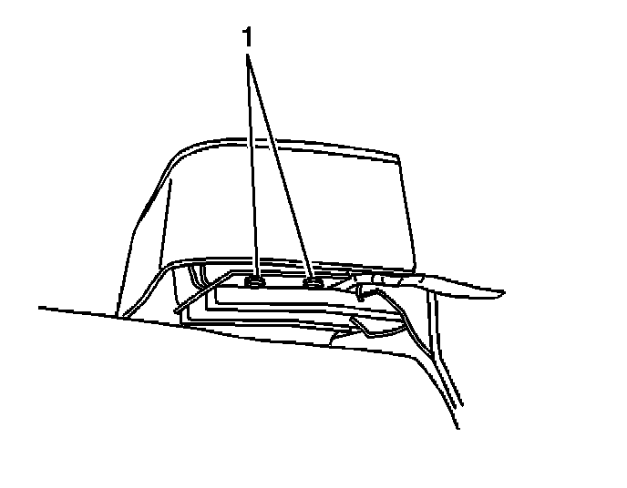 2. Remove the rivets (1) retaining the cupholder from the bottom of the center seat.