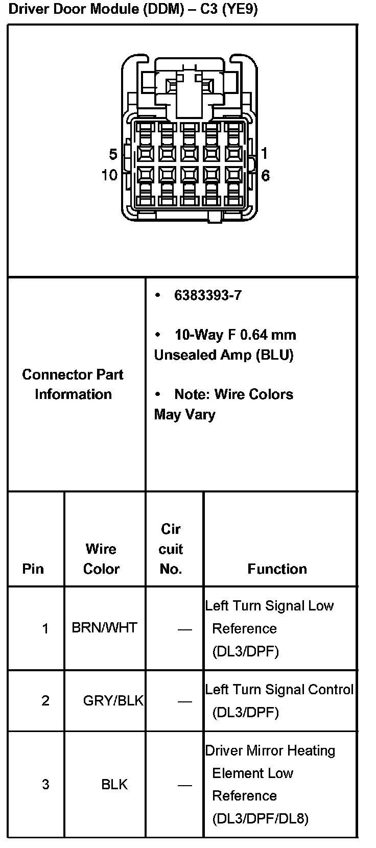 Driver Door Module (DDM) - C3 (With RPO Code YE9)