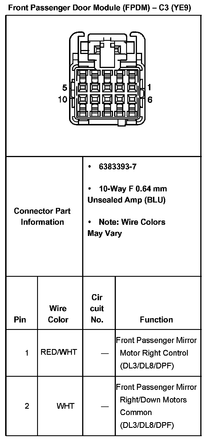 Front Passenger Door Module (FPDM) - C3 (With RPO Code YE9) Part 1: