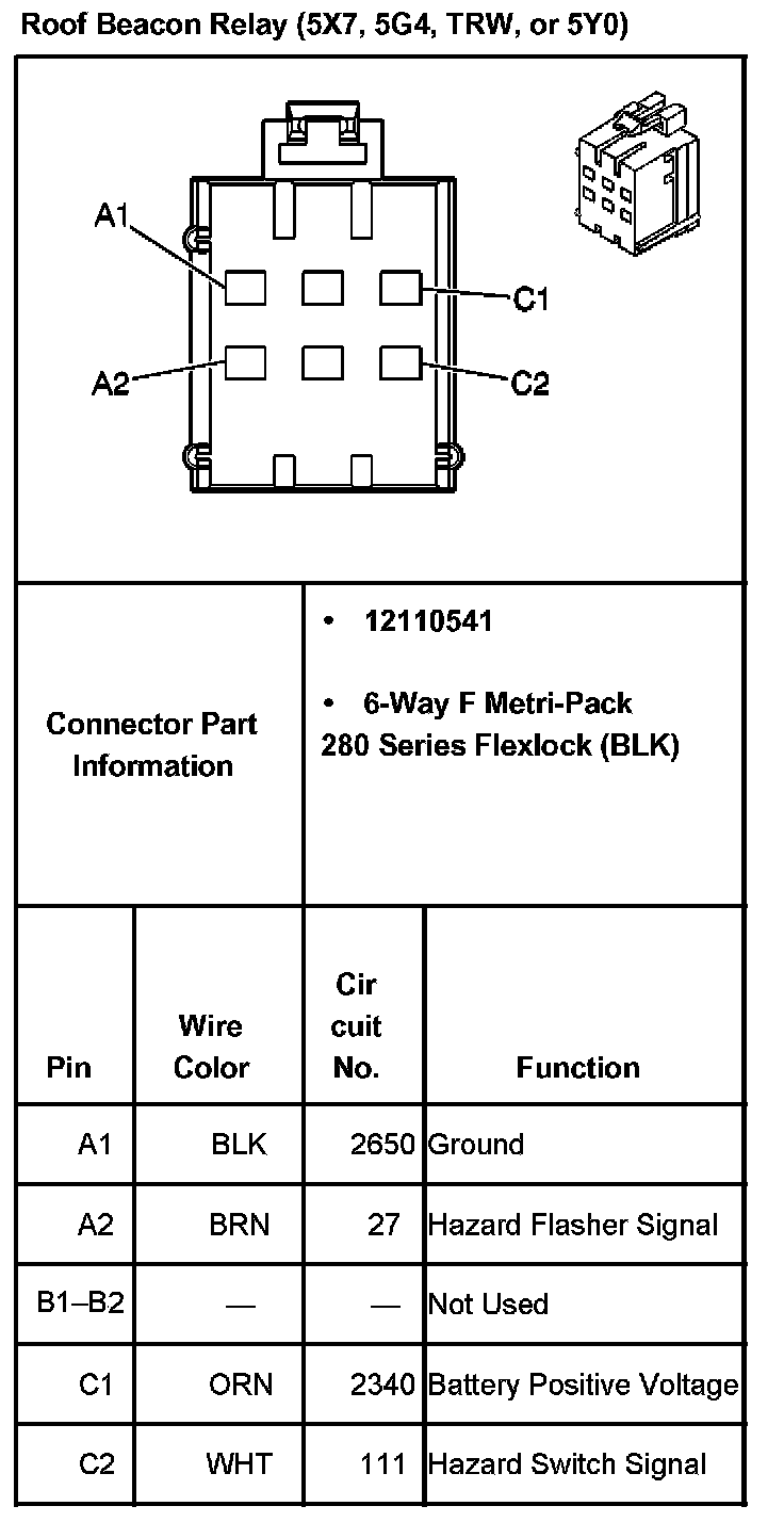 Roof Beacon Relay (With RPO Code 5X7, 5G4, TRW, Or 5Y0):