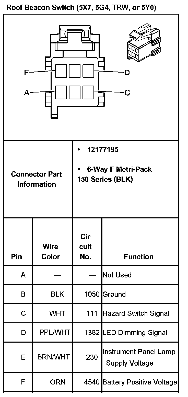 Roof Beacon Switch (With RPO Code 5X7, 5G4, TRW, Or 5Y0):