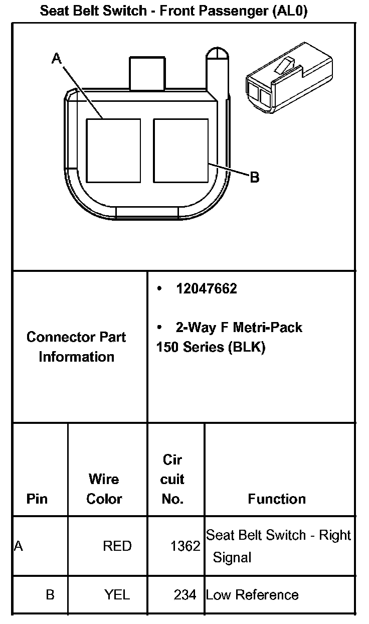 Seat Belt Switch - Front Passenger (With RPO Code AL0):