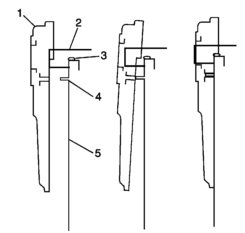 4. Lower the cover down over the dowel pin (4), allowing the front cover to rest on the sealant (3).
