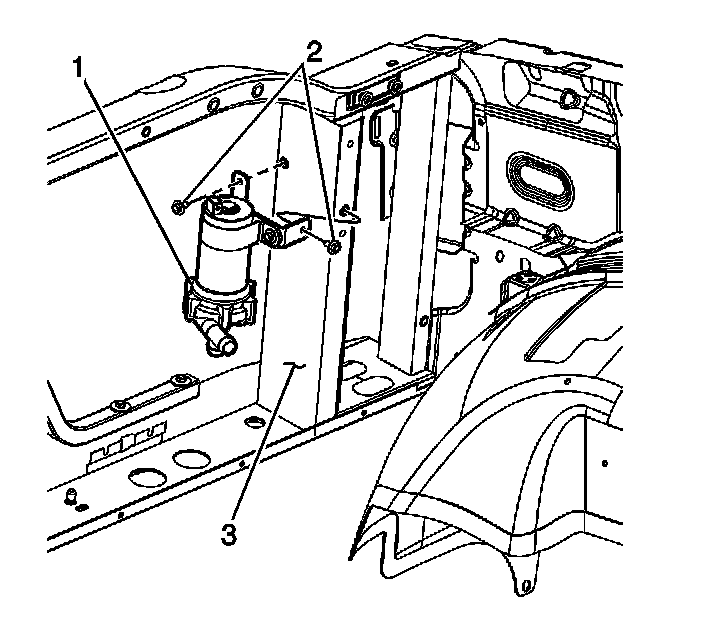 7. Position the SGCM coolant pump (1) to the radiator core support (3).