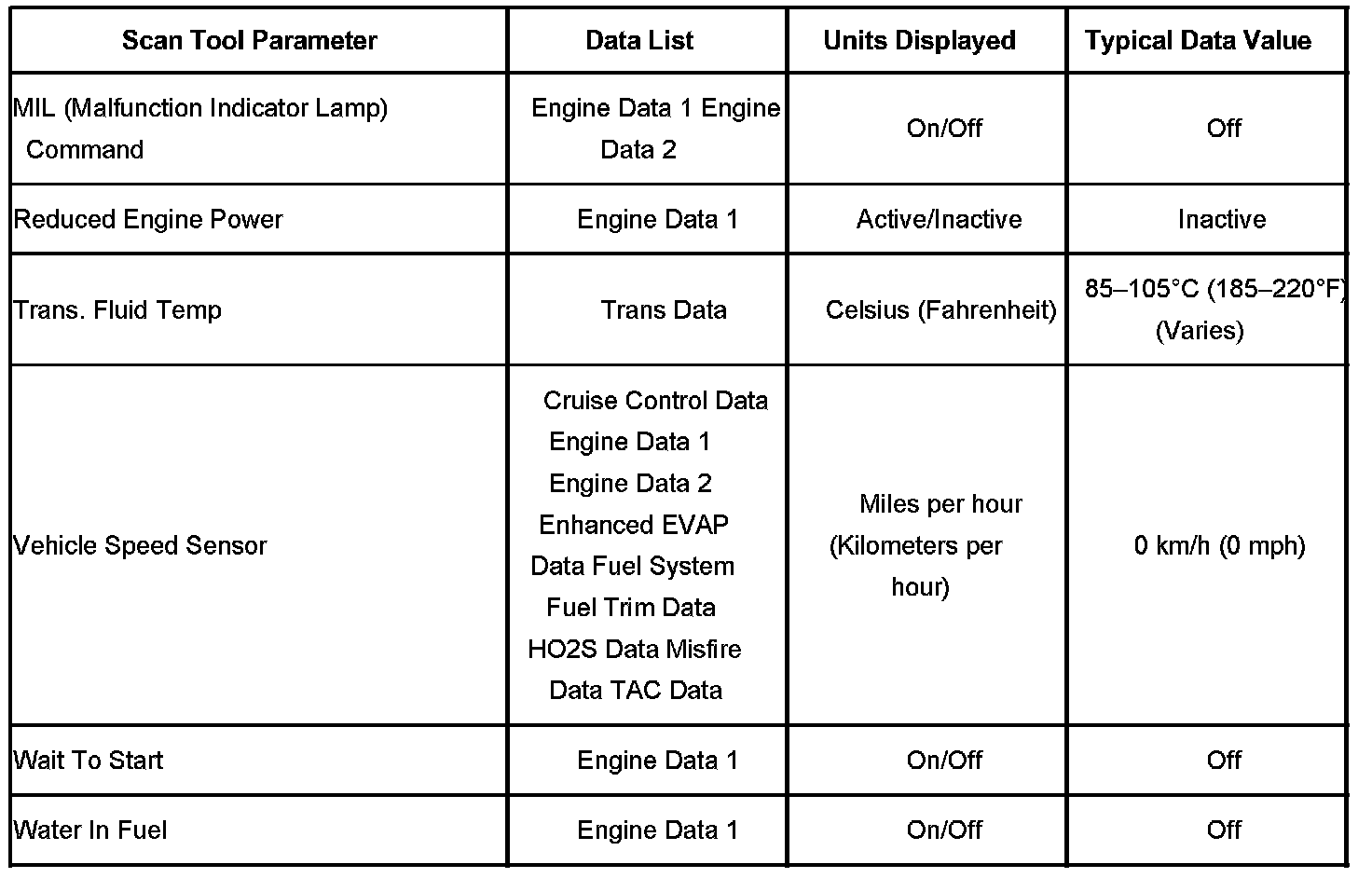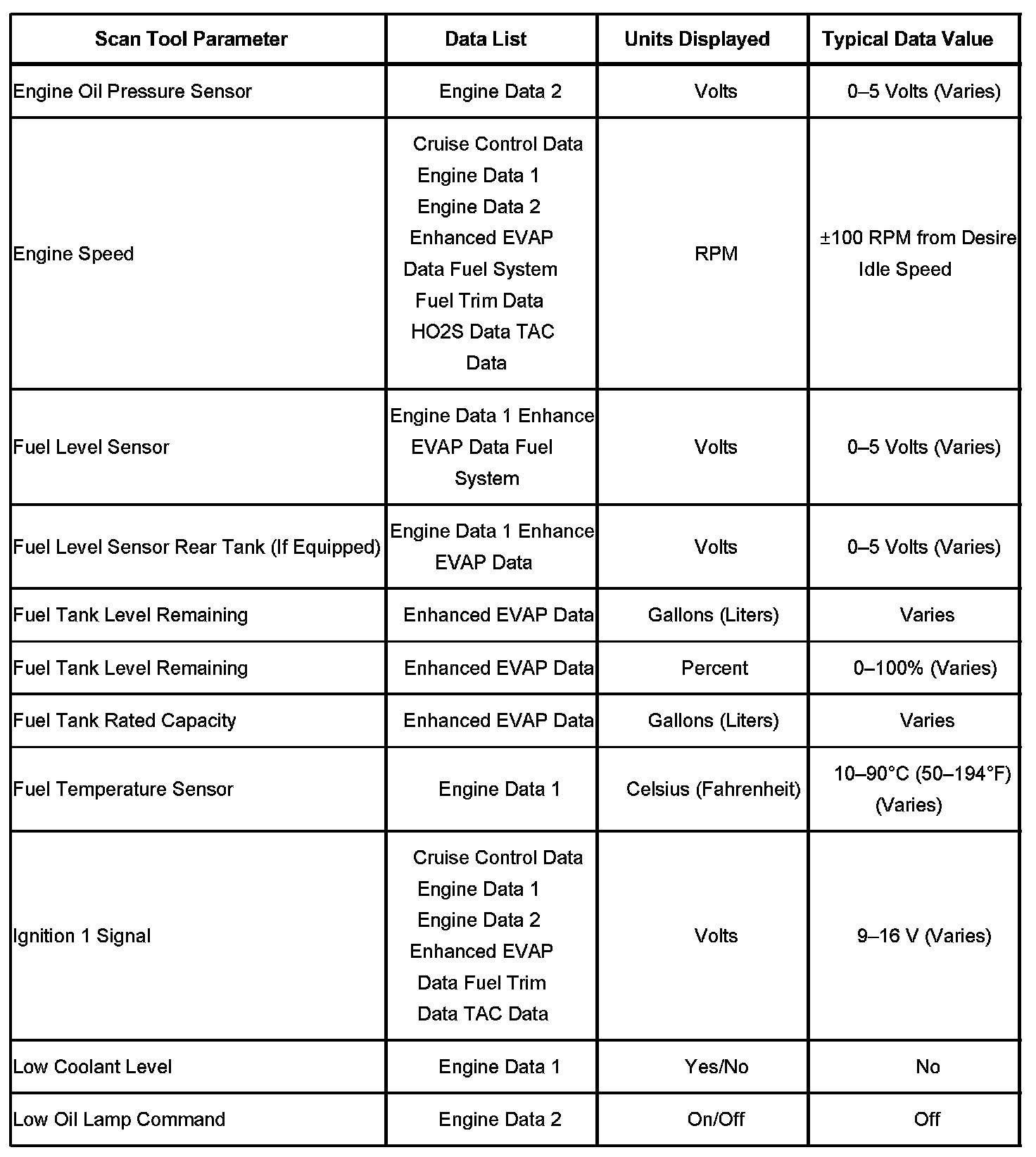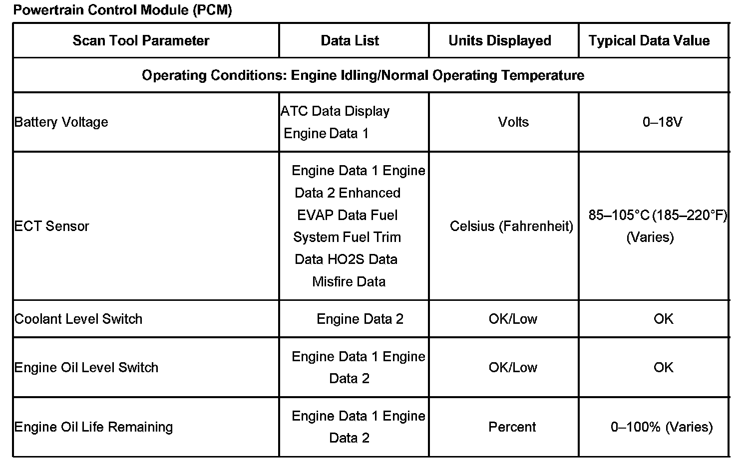 Scan Tool Data List - Powertrain Control Module (PCM)