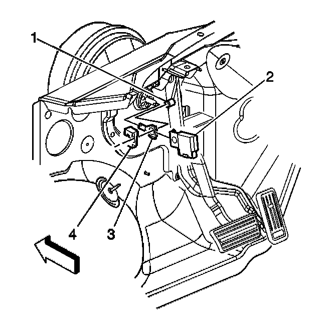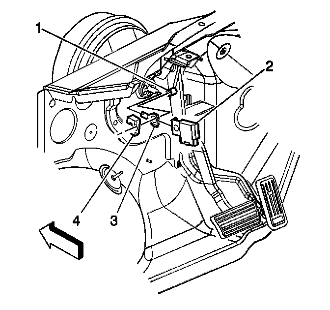 1. Disconnect the electrical connector from the stop lamp switch (2).