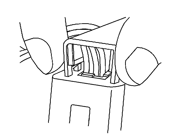 9. Use J 38125-12A to gently lift the terminal retaining tab while gently pulling the wire out of the back of the connector. Always remember never use force when pulling a terminal out of a connector. If the terminal is severely bent or damaged, it may be possible on some connectors to push the wire out of the front of the connector instead of pulling it through. This will prevent damage to the internal seals of the connector. Once the terminal is pushed out of the connector, cut the wire as close to the terminal as possible and pull the wire through the connector.