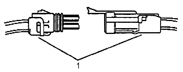 4. Insert the Weather Pack(R) terminal removal tool into the front (mating end) of the connector cavity until it rests on the cavity shoulder (1).