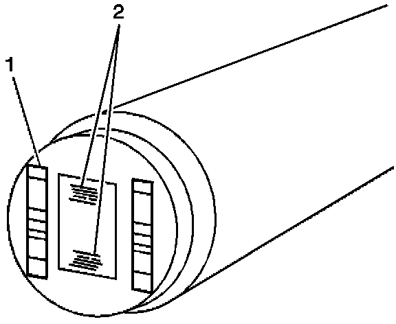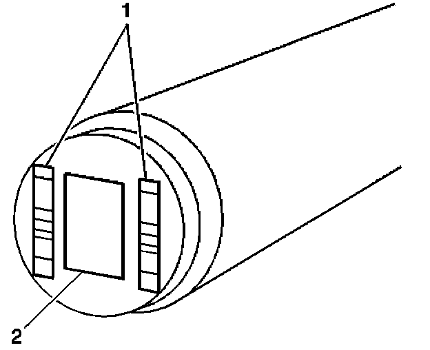 13. Normal CKP sensor wear will be shown on the wear strips (1) and no wear will be shown on the sensor sensing element (2).