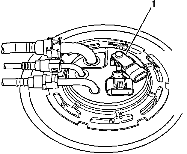 2. Using a slight rocking motion, while pulling straight up, remove the fuel tank pressure sensor (1).