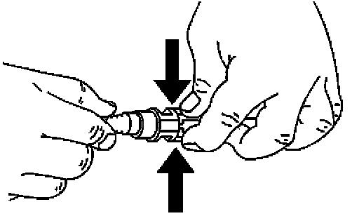 4. Squeeze where indicated by the arrows on both sides of the plastic ring to disengage the quick connect fitting.