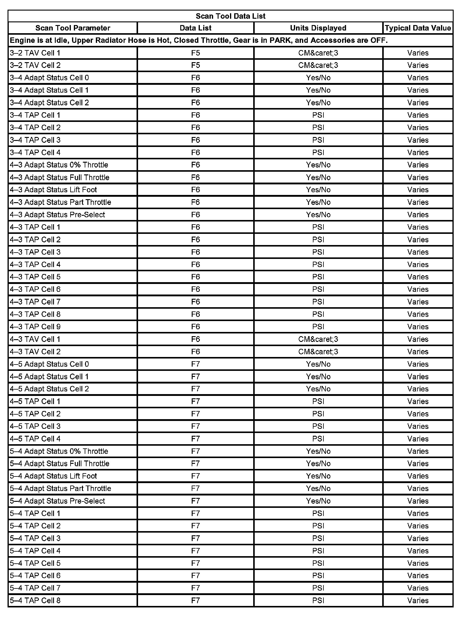 Scan Tool Data List