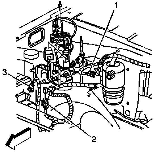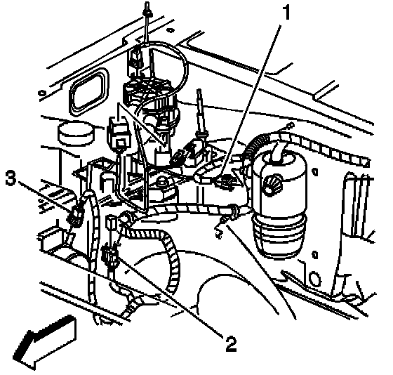 2. Disconnect the mass air flow/intake air temperature (MAF/IAT) sensor electrical connector (3).