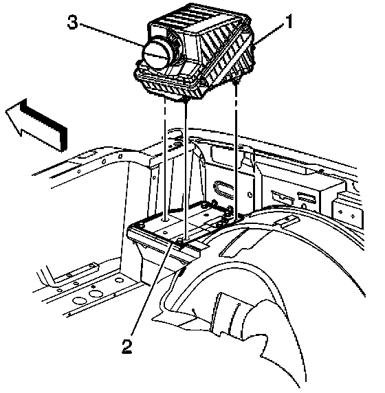 3. Pull up on the air cleaner assembly (1) in order to release the retainers from the air cleaner adapter (2).
