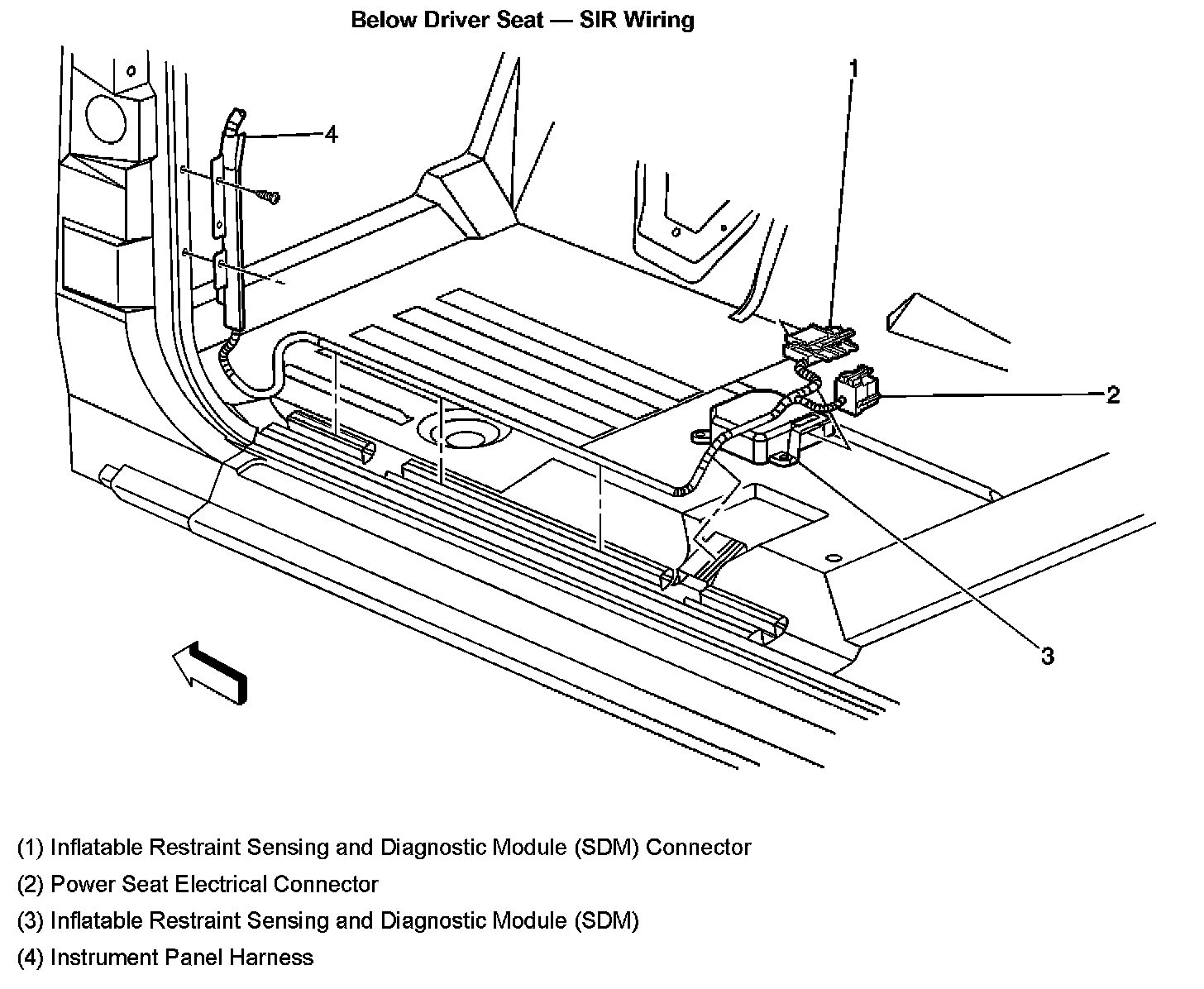 Below Driver Seat - Restraint Systems Wiring: