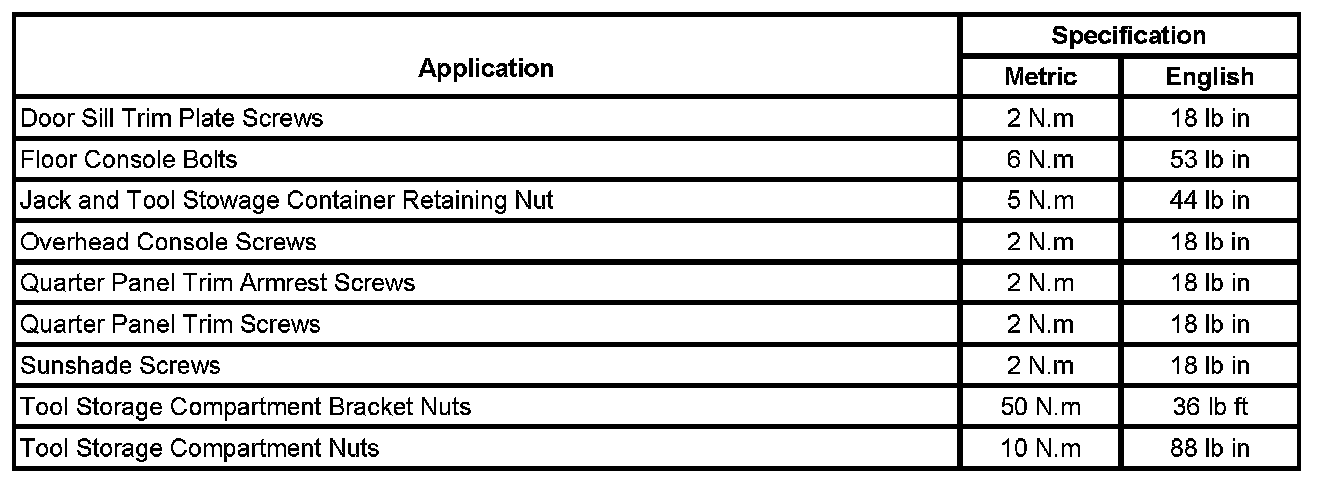 Fastener Tightening Specifications
