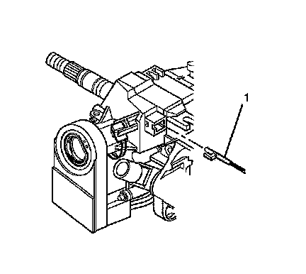 ^ The locking tab at the end of the park lock cable assembly (1) must be installed into the ignition lock cylinder case.