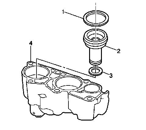 1. Install the 3rd clutch accumulator piston inner (3) and outer (1) seals. Lubricate the 3rd clutch accumulator piston seals (1, 3) with DEXRON� III automatic transmission fluid.