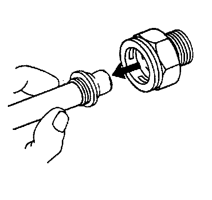 18. If you cannot position the plastic cap against the fitting, remove the retaining ring from the quick connect fitting. Check the retaining ring and the tube end in order to ensure neither is bent. Replace the cooler line or the retaining ring if necessary, and reinstall the cooler line per the installation procedure.