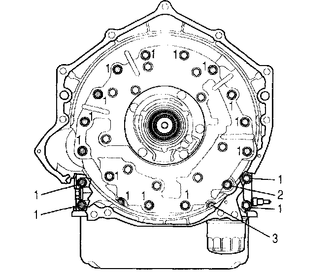 1. Remove 18 bolts (1), one bolt (2), and one bolt (3).