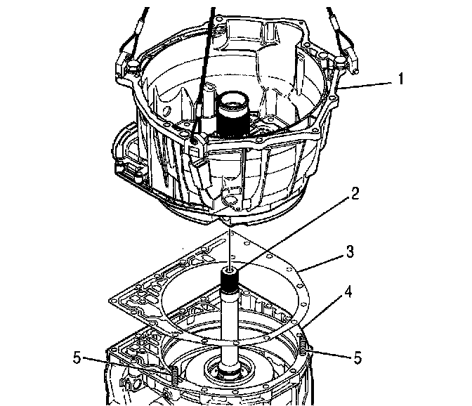 4. Remove the converter housing/front support module (1) from the main housing (4) and the turbine shaft (2).
