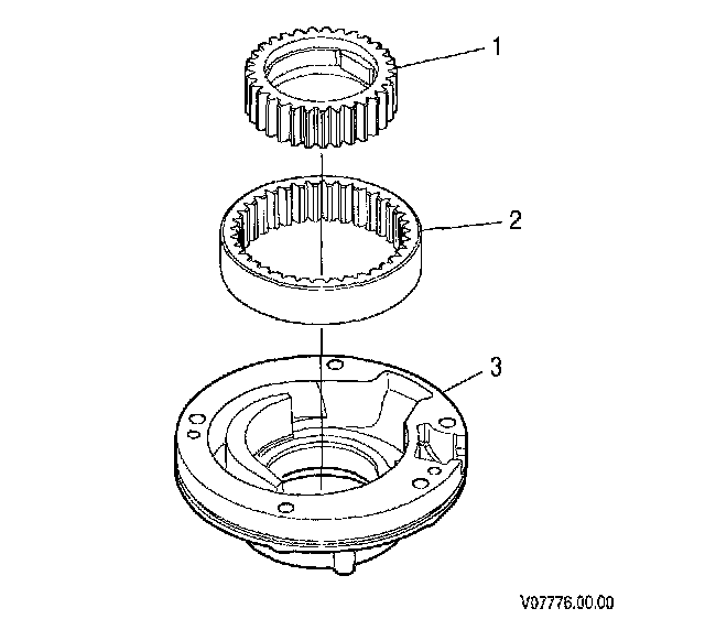 11. Remove drive gear (1) and driven gear (2) from main pump body (3).