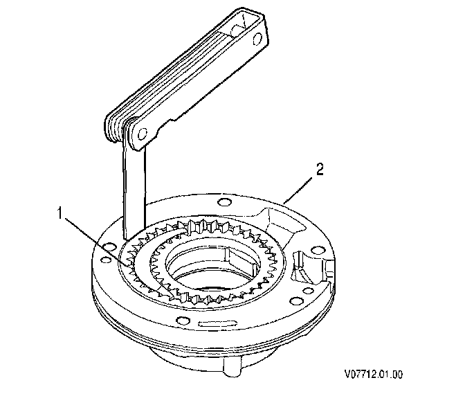 8. Measure the clearance between driven gear (1) and main pump body crescent (2).