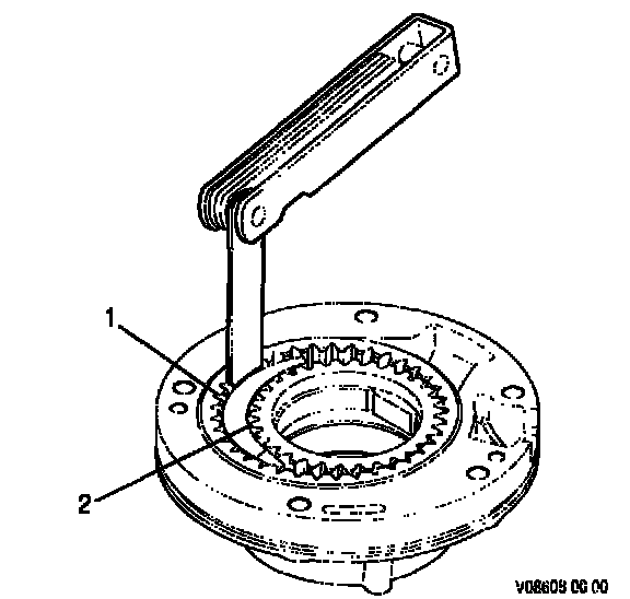 10. Hold a straight edge across main pump body (1) and driven gear (2). Measure the clearance between the driven gear and the straight edge.