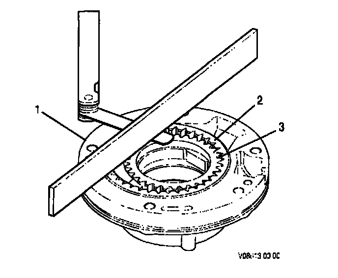 9. Hold a straight edge across main pump body (1) and drive gear (3). Measure the clearance between the drive gear and the straight edge. This is the drive gear side clearance.