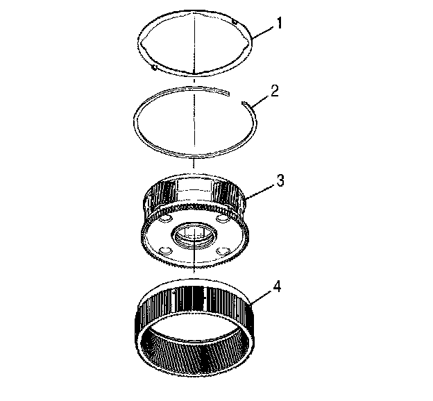 Remove retaining ring (2) from P2 ring gear (4).