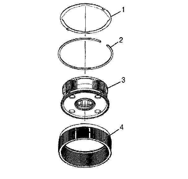 P1 Planetary Assembly Assemble1. Position P2 ring gear (4) on the work table so that the tang holes are facing up.
