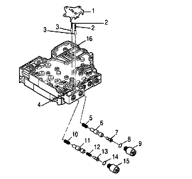 22. Align the A/B solenoid bracket (1) with the main valve body dowel pin (4).