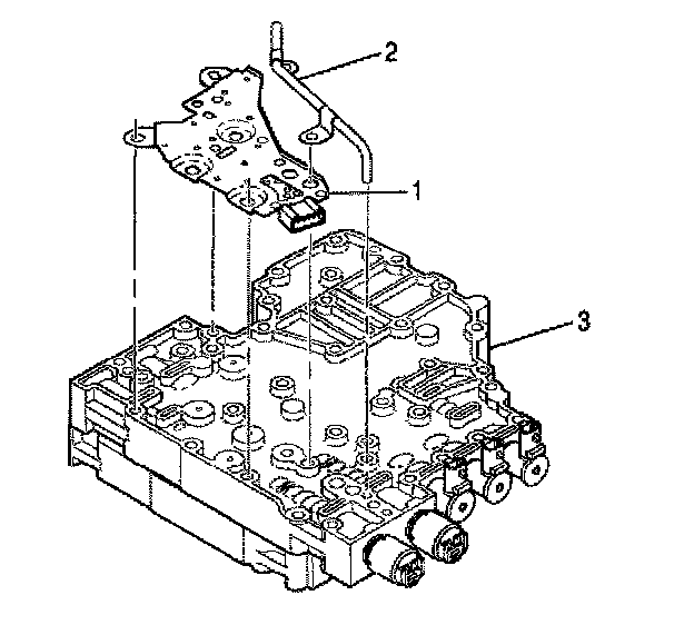 4. Align the shift valve body assembly (1) with the main valve body dowel pins (3).