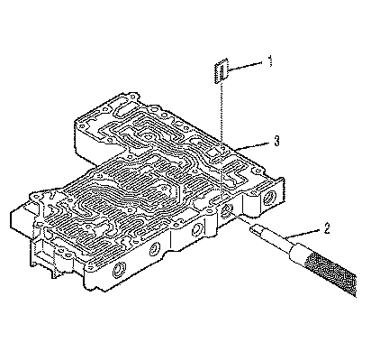 4. Align shift valve body assembly (1) with main valve body dowel pins (3).