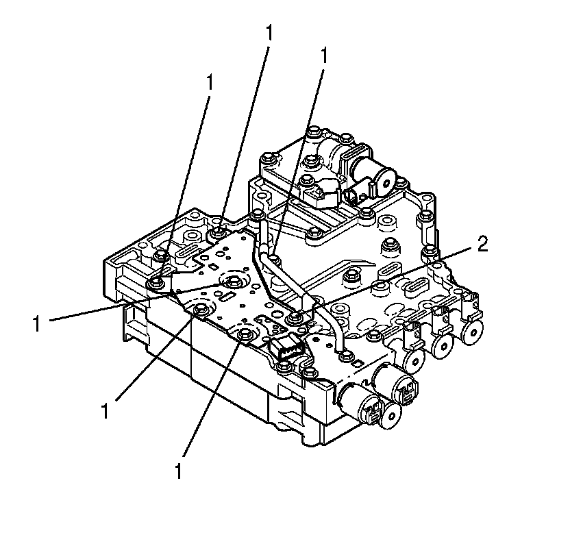 Install the two bolts (1) retaining the G solenoid valve body and the shift valve body to the main valve body.