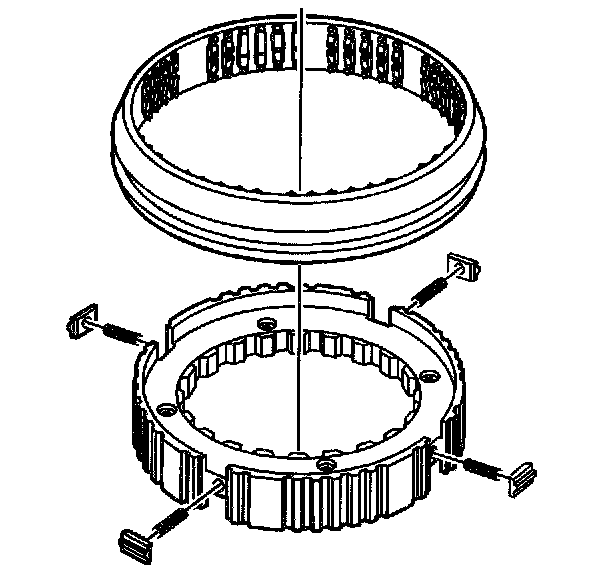 ^ Only disassemble the synchronizer sleeve from the synchronizer hub if there is a suspected gear shift concern.