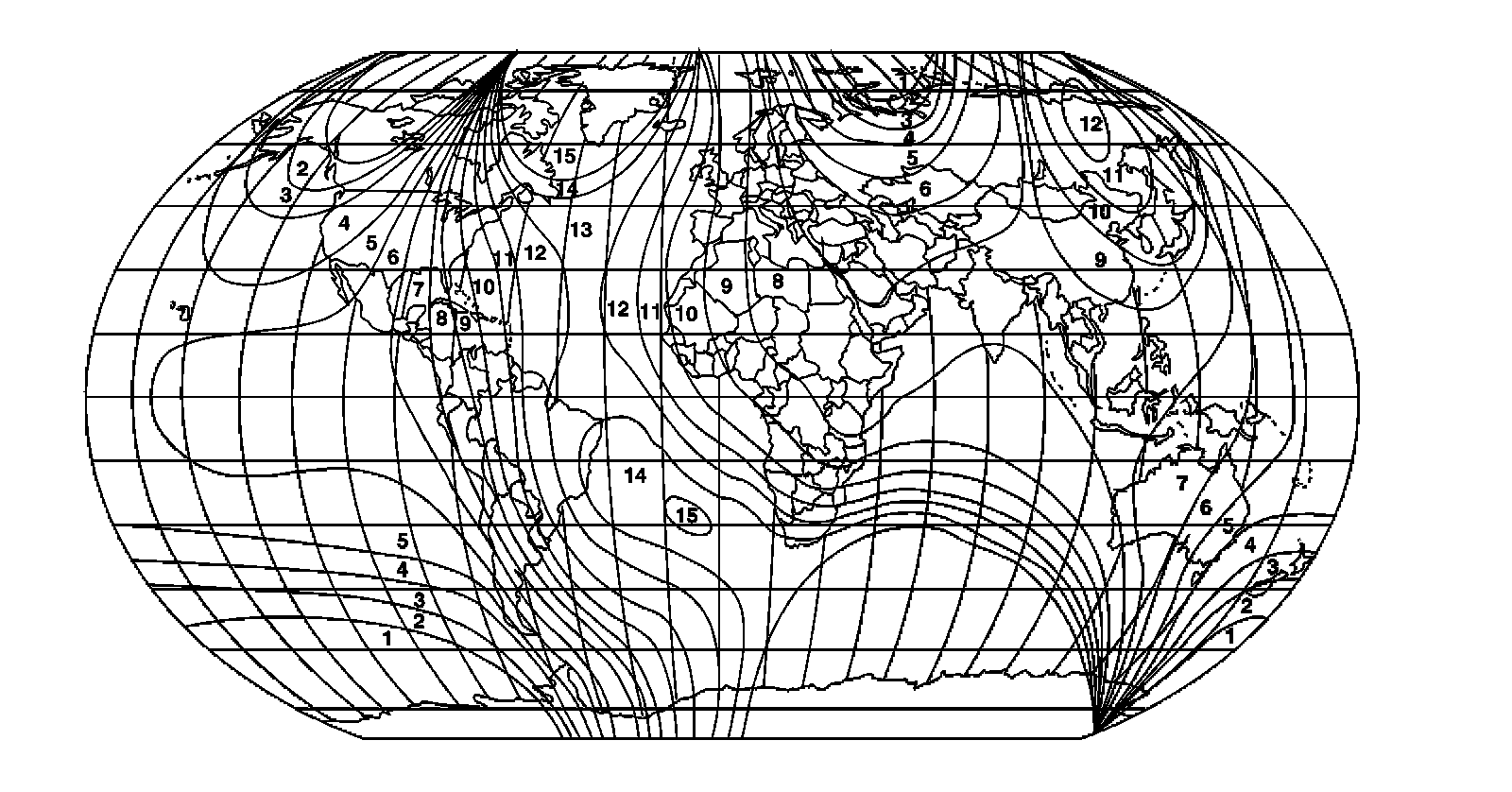 1. Locate your current geographic location on the World Magnetic Variation Map.